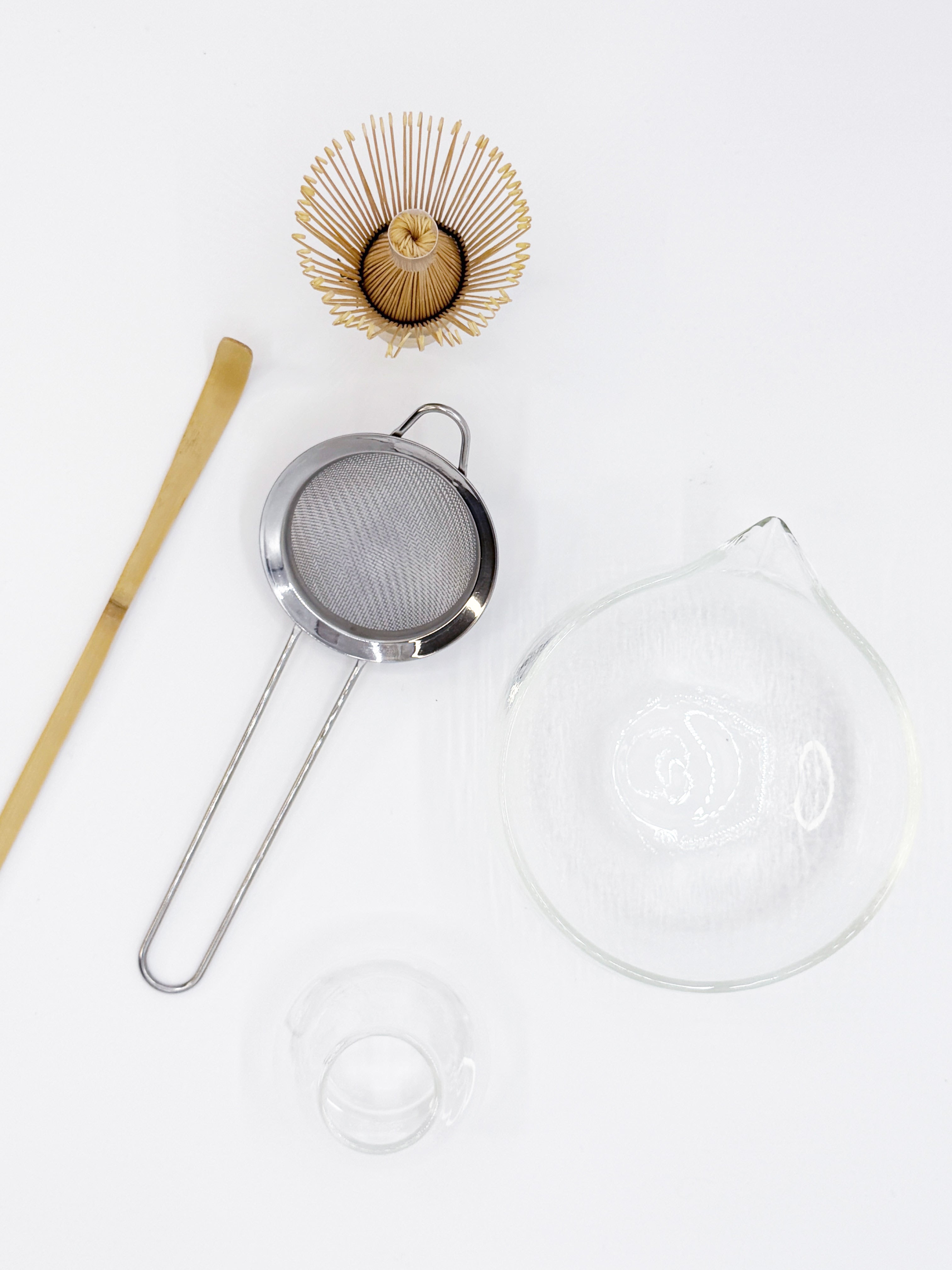 The bamboo whisk (chasen) is designed to blend matcha powder and water into a frothy, lump-free tea, while the matcha bowl provides the perfect shape for whisking and serving. A whisk holder helps maintain the shape and longevity of the chasen between uses. The medium-size strainer ensures the matcha powder is finely sifted for a silky texture, and the bamboo scoop (chashaku) allows for precise, authentic measuring of matcha. Together, these tools create a simple and mindful matcha-making experience. 🍵